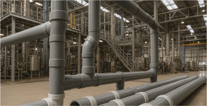 Tuberías y accesorios resistentes para procesos industriales, con alto desempeño en conducción de fluidos y servicios.