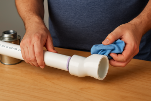 4. Limpia y seca tanto la tubería como el accesorio para eliminar polvo, grasa o humedad. Si ya estaban instalados, quizá necesites un limpiador específico.